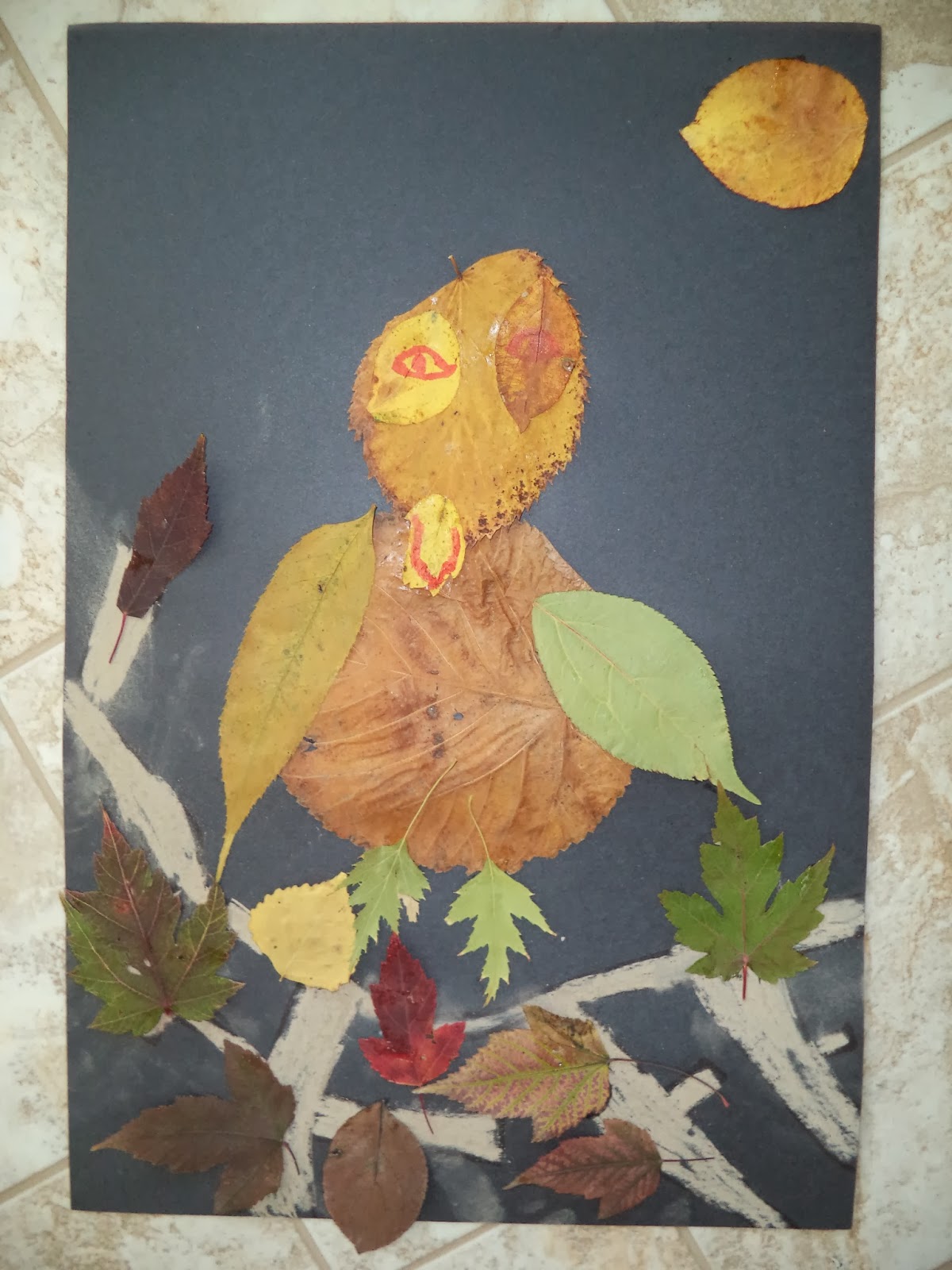 Today in art art class, my primary class created these leaf critters. We added details with permanent markers and coloured chalk.  What critter can you see in each project?